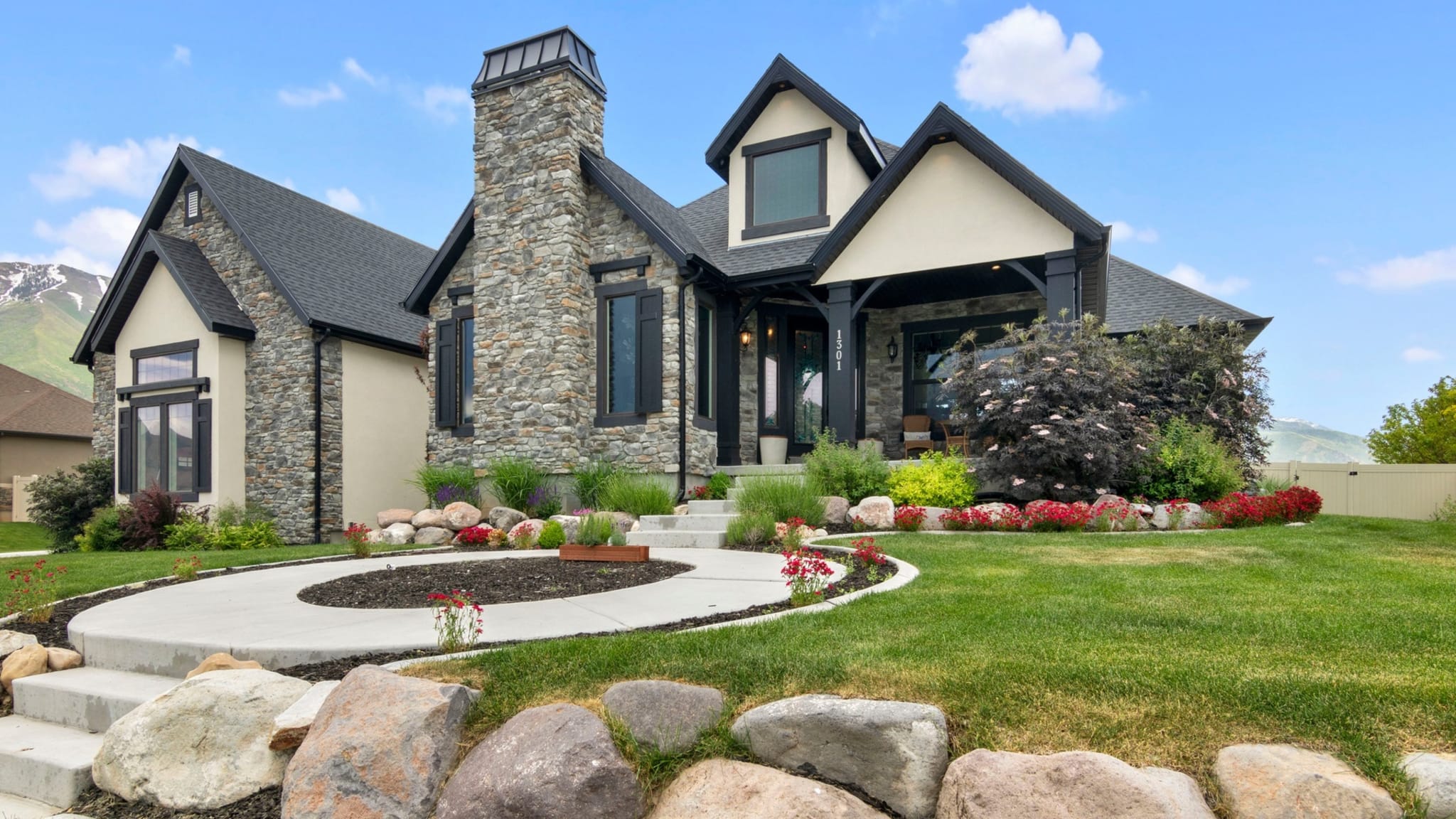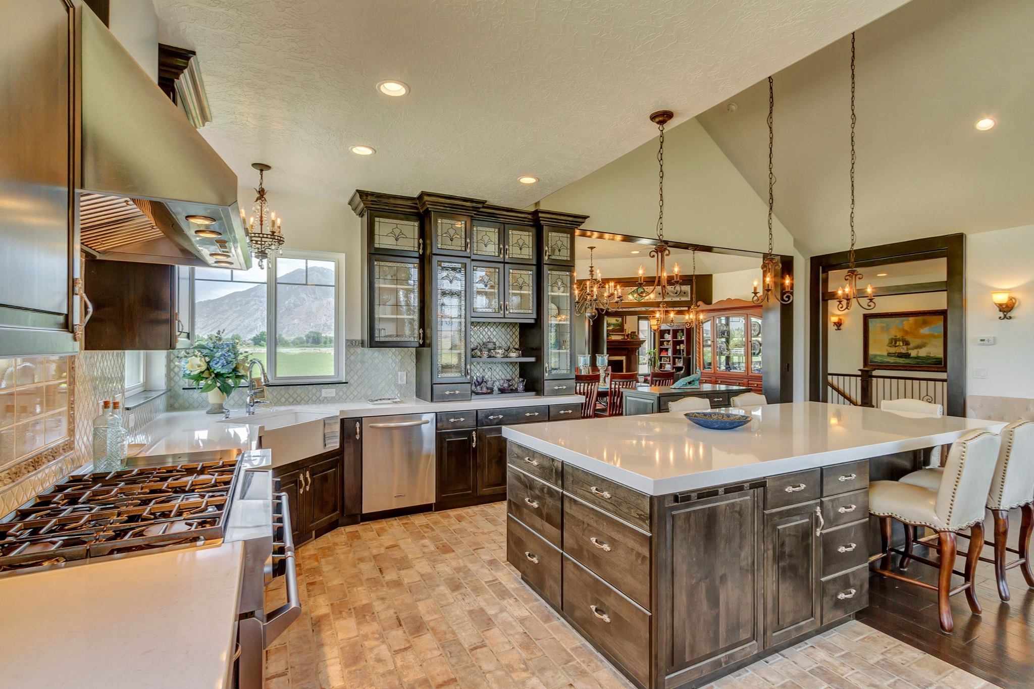 The interior of this luxurious 4 bedroom 4 bath is finished in a unique open floor-plan British Colonial style and is situated in a high end community in Mapleton.