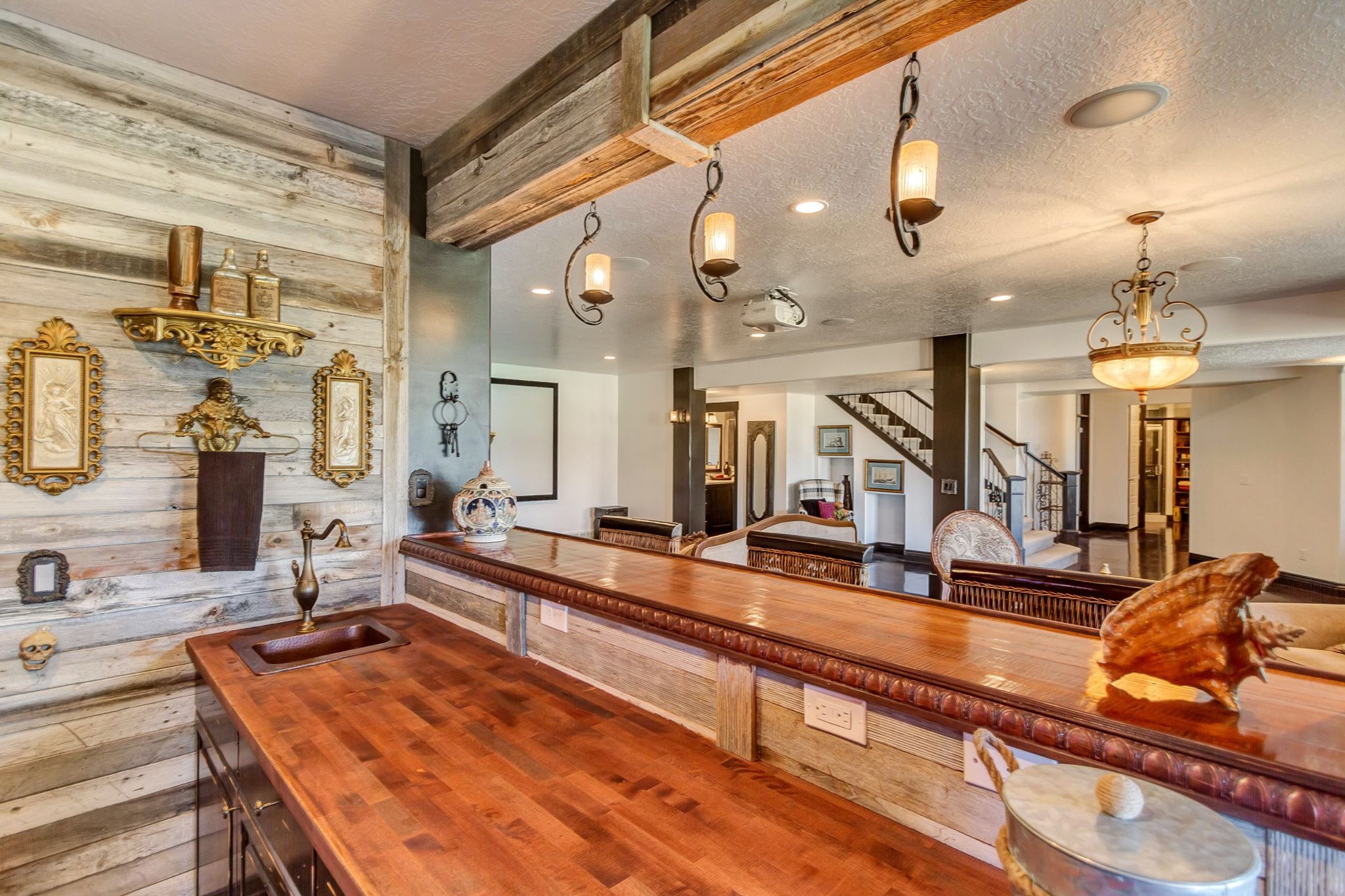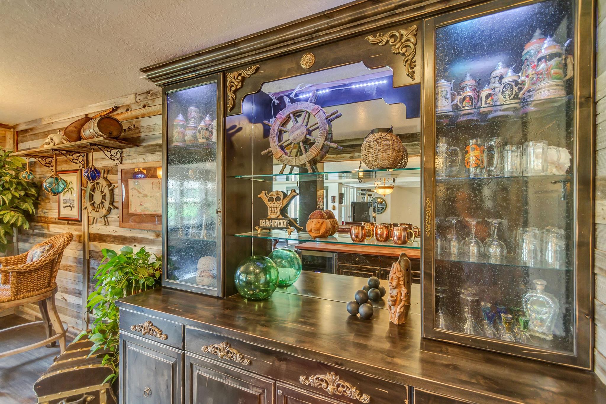 The basement is equally unique and features full light walkout, integrated home theater, and is the home to the famous One Eyed Jack’s Tavern, a custom theme bar and kitchenette, designed with barnwood and heavy maple countertop providing a unique gathering place unlike any other. The home is situated on a large 0.5 acre lot with full landscaping, covered deck, and large patio with firepit and was purposefully designed for entertaining both inside and out, including distributed audio, and plumbed with natural gas for outdoor cooking.